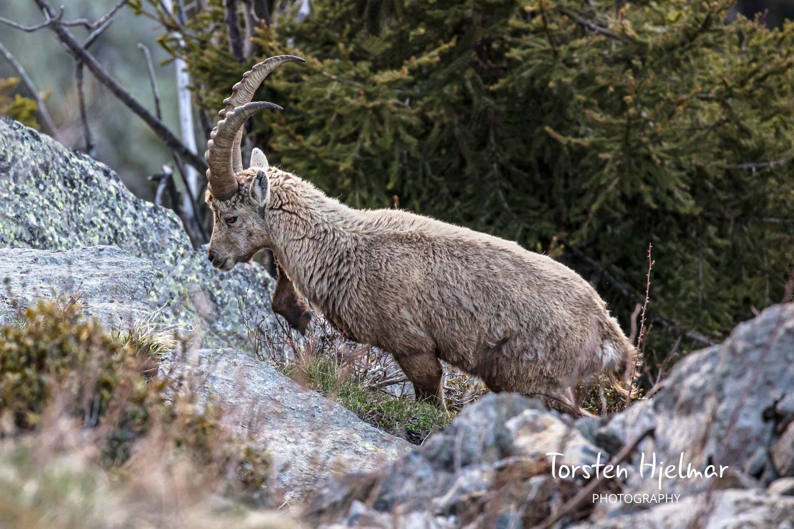 Capra is a genus of mammals, the goats, composed of up to nine species, including many species known as ibexes. An ibex is any of several species of wild goat (genus Capra), distinguished by the male’s large recurved horns, which are transversely ridged in front. Ibex are found in Eurasia, North Africa and East Africa. Ranging in height from 70 to 110 centimetres (27–43 in) and weighing 90 to 120 kilograms (200–270 lb), ibex can live 20 years.