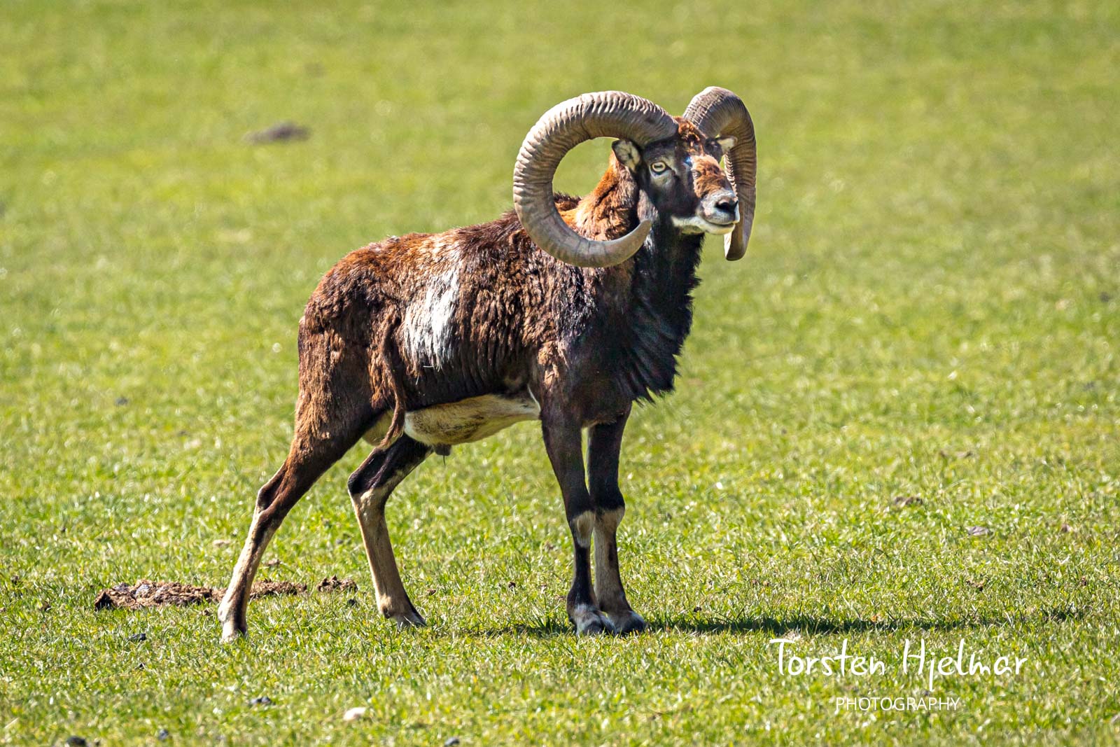 The Corsican mouflon (Ovis gmelini) is a wild sheep, thought to be the ancestor of all modern domestic sheep breeds. The horns of the male forms a coil, that when it reaches 7-8 years of age can measure up to 1,10 m.