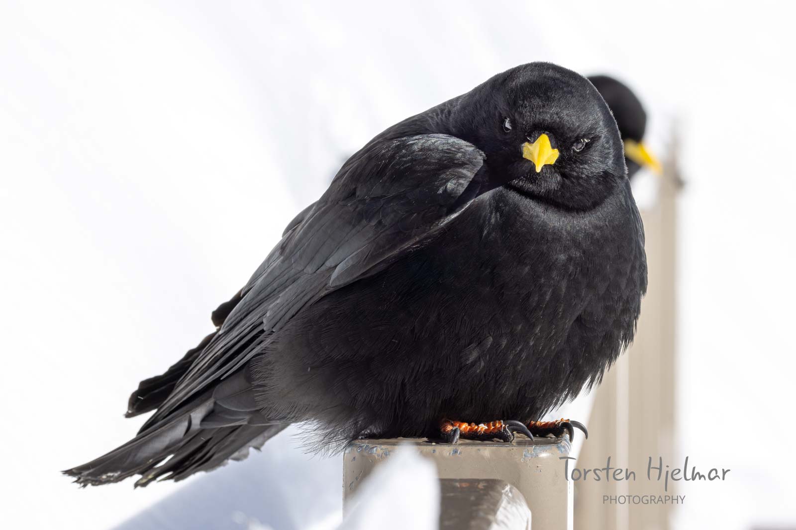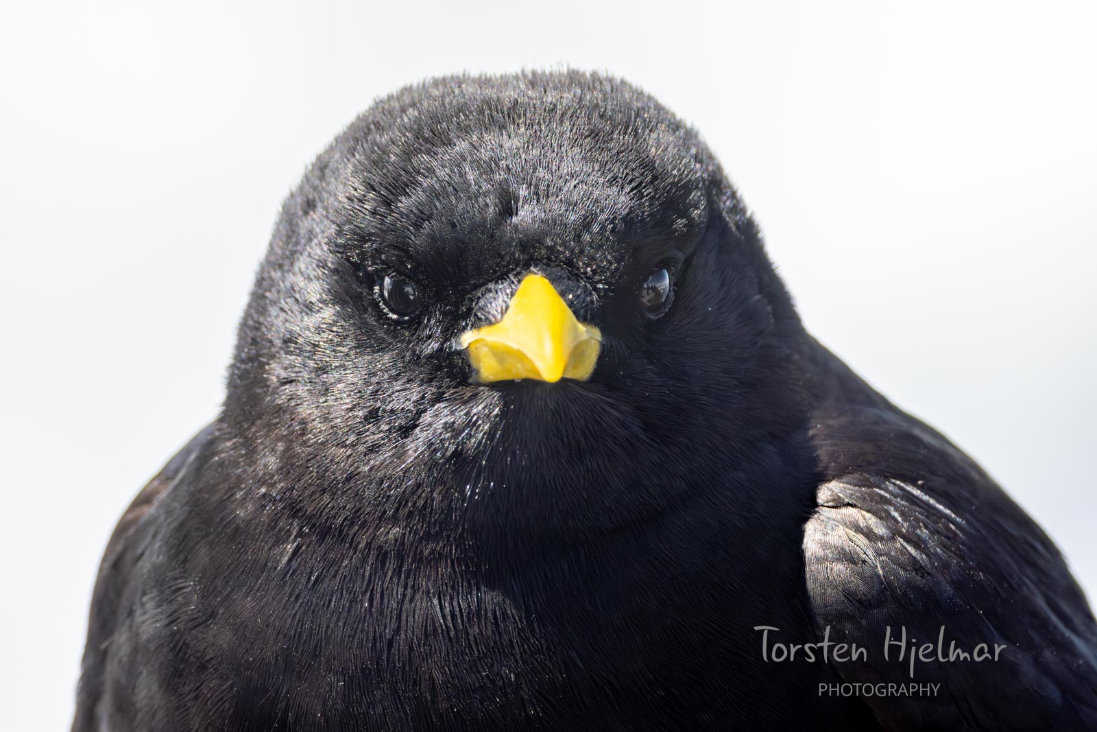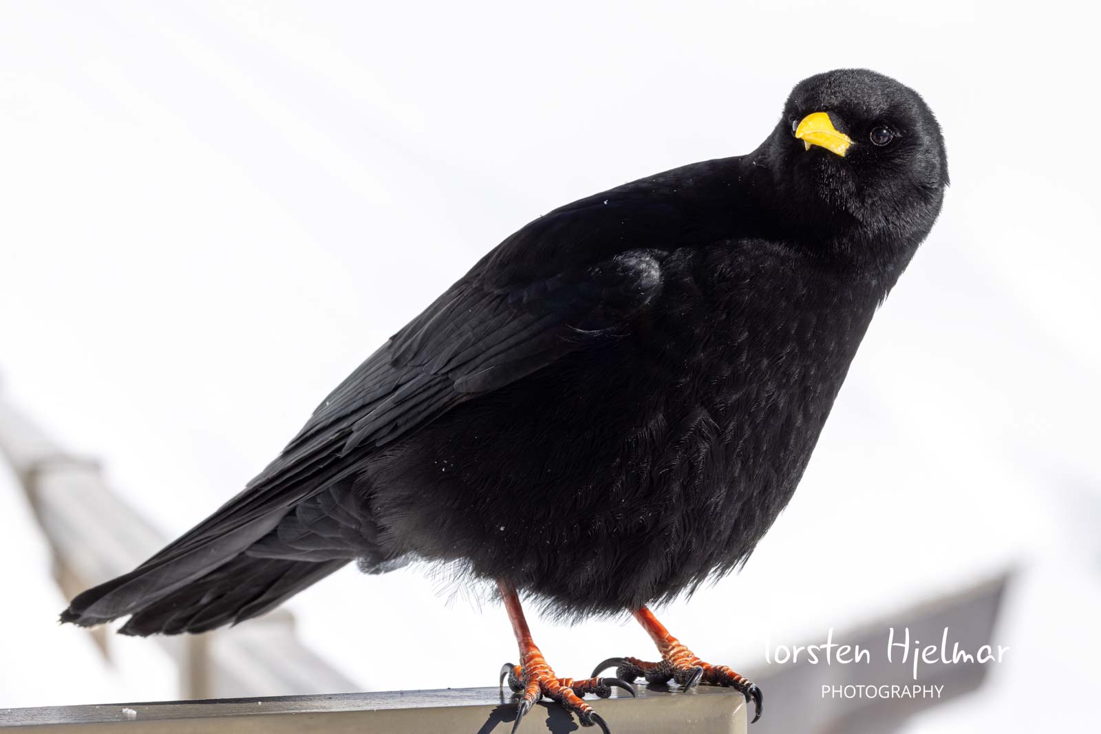 The genus name of the Alpine chough (Pyrrhocorax graculus) is derived from Greek πύρρος (purrhos), "flame-coloured", and κόραξ (korax), "raven". It breed in high mountains from Spain eastwards through southern Europe and North Africa to Central Asia and Nepal, and it may nest at a higher altitude than any other bird. The Alpine