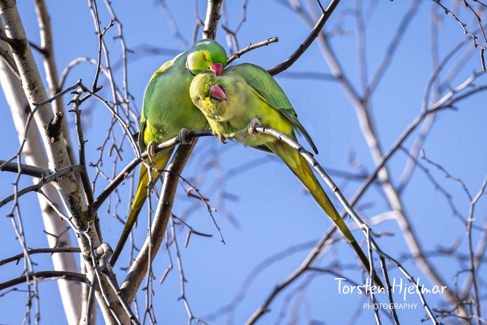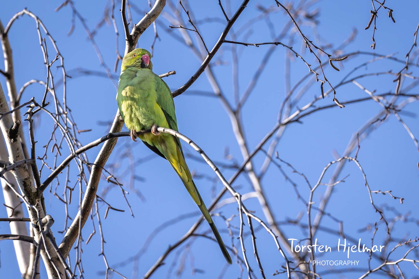 The ring-necked parakeet (Psittacula krameri) first appeared in Brussels in the 1970s and have since grown to thousands living in various parts of the city.