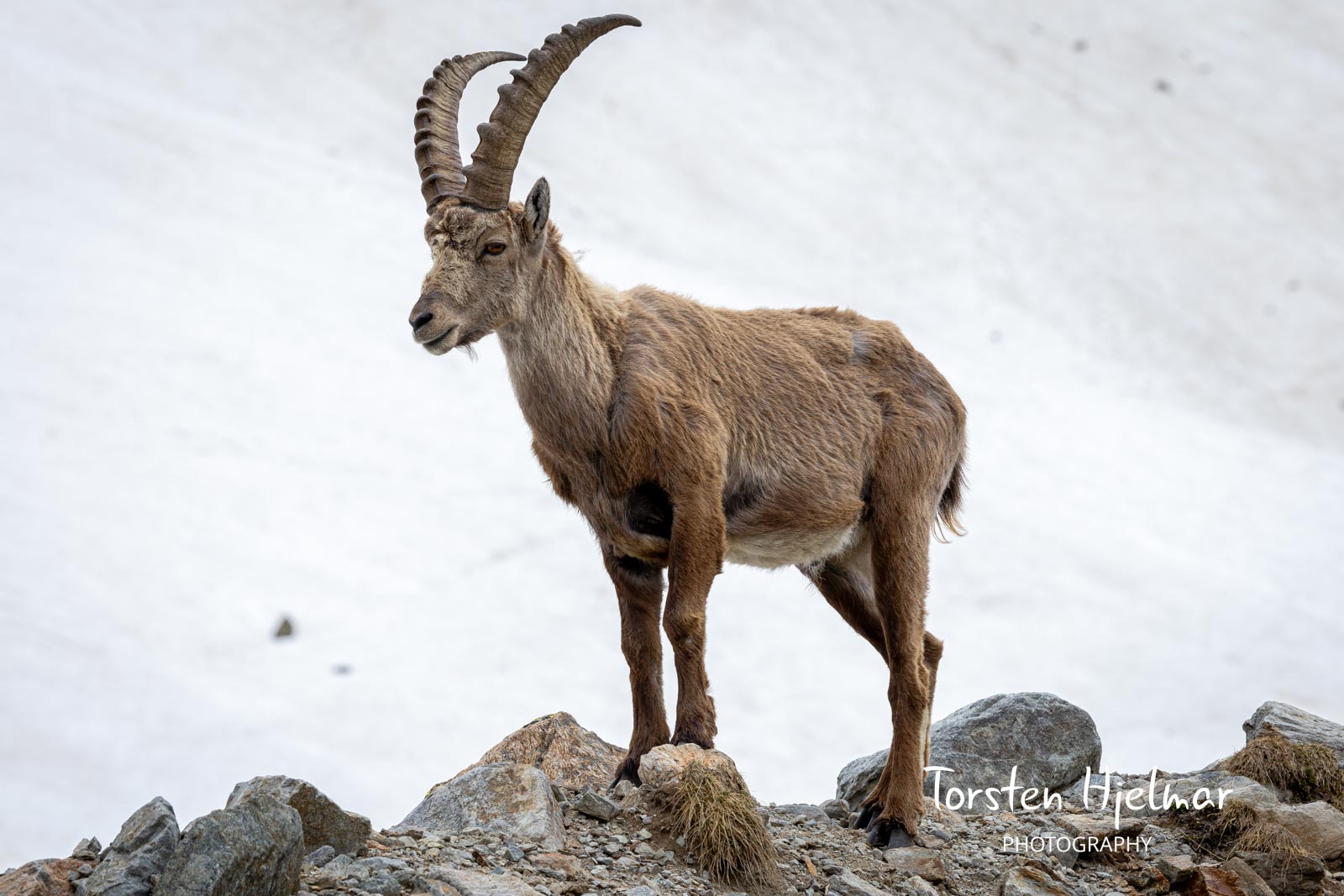 Male wild goat or ibex (genus Capra), called buck, with its characteristic recurved horns with transversed ridges in front. They are unbelievable apt at climbing even very steep mountain slopes.
